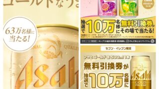 今日からスタート!当たるまで毎日チャレンジ🍻アサヒゴールド 500ml 10万名 〜4/29dポイント/d払いアプリ セブンイレブン限定アルパカ フルーツスパークリング 350ml 10万名 〜4/29dポイント/d払いアプリ セブンイレ...