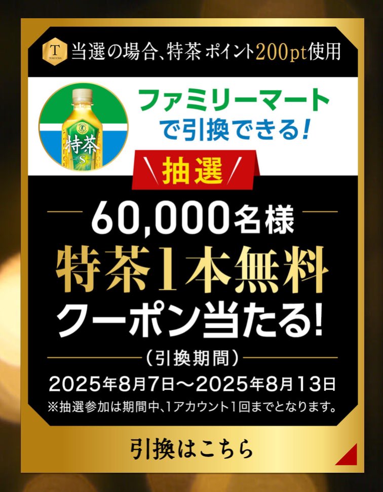特茶をまだ買ったことない方は特茶のQRコードを読み込んでゴールドメンバーズになると参加できます。