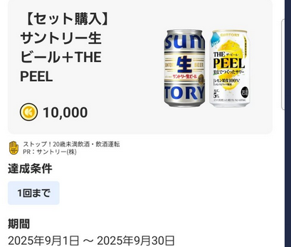 サントリー生ビールに当選したら、THE PEELを同時購入レシートを