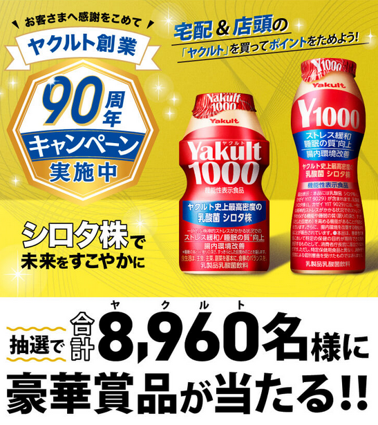 ヤクルトを買って応募で抽選で8,960名に100円分のPayPayポイント等が当たります。