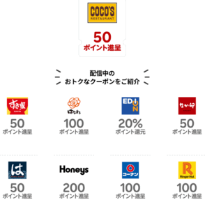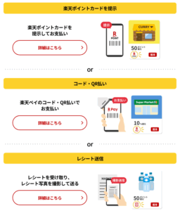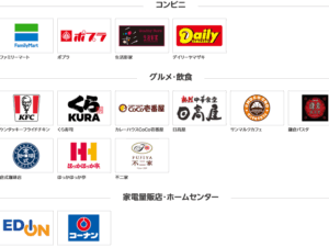 ファミマの他にも、すき家、はなまるうどん、エディオン、なか卯、はま寿司など。楽天ポイントカード提示または楽天ペイアプリで支払でポイント還元されます。