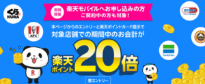 楽天モバイル契約者20倍キャンペーン エントリー&ポイントカード提示で楽天ポイント20倍