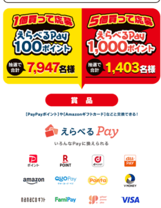 30%還元なので500円以上1000円未満の商品を買うのがいいですね。