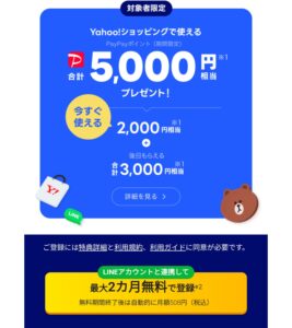 ・LYPプレミアム会員登録時に、PayPayポイント(期間限定)2,000円