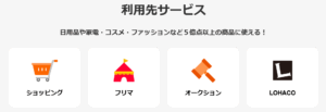 もらったポイントはヤフーショッピング、ヤフーフリマ、ロハコなどの商品購入に使えます。