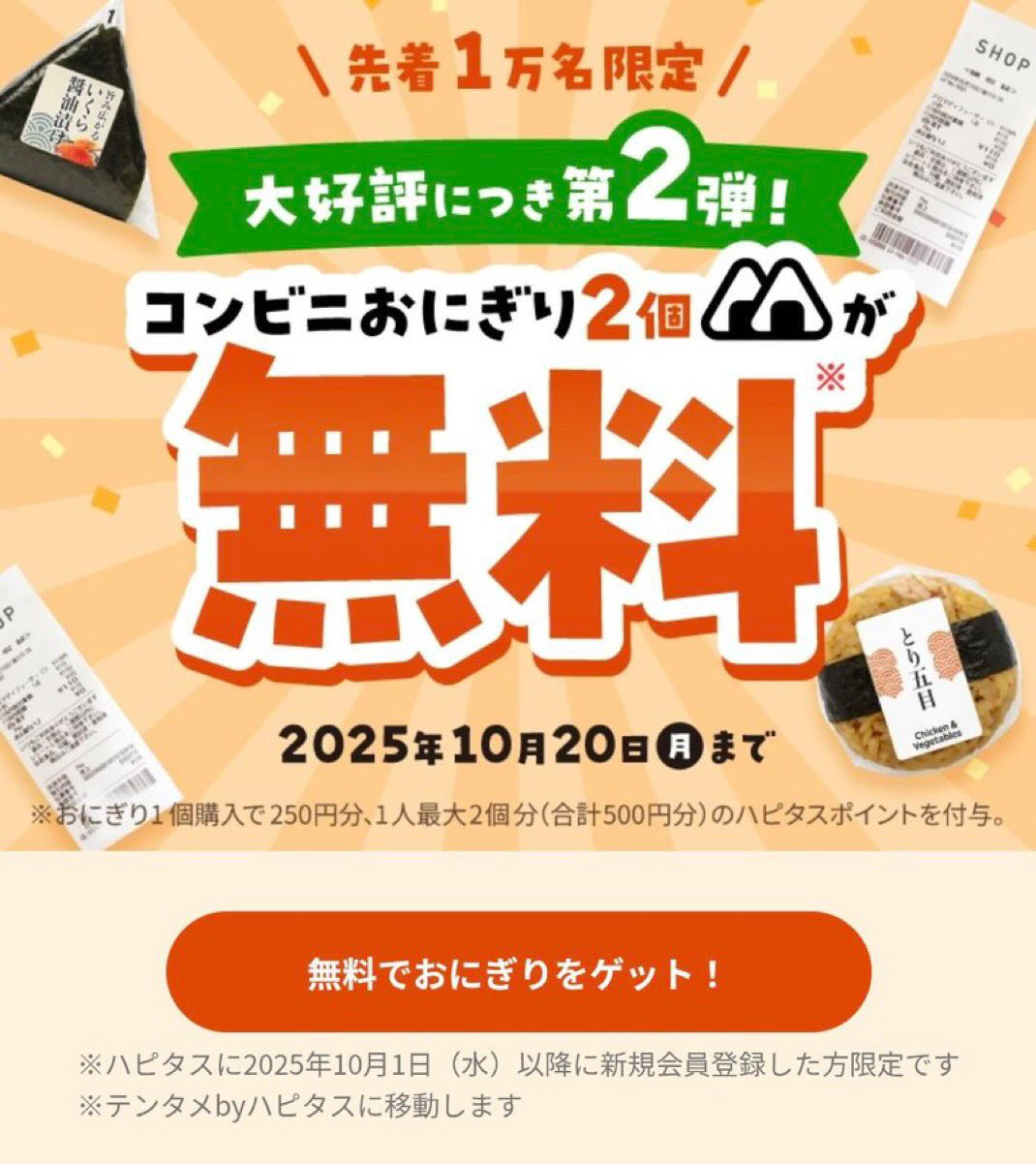 ハピタスのテンタメでおにぎり2個分(500円相当)が実質無料!