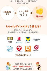 もらったポイントは現金化、PayPay、Vポイント、Amazonギフトなどに交換できます。