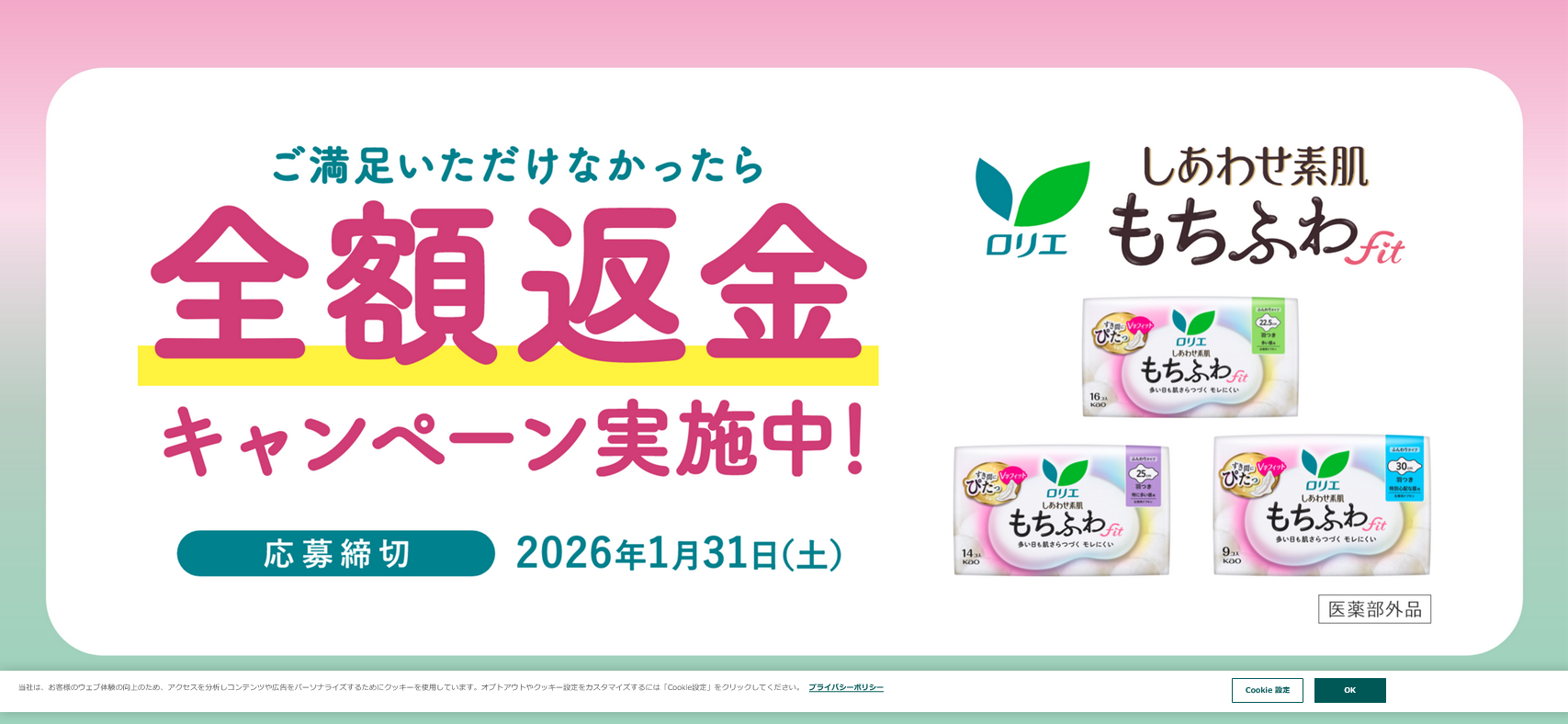 【Amazon】花王 ロリエ しあわせ素肌 もちふわfit