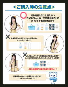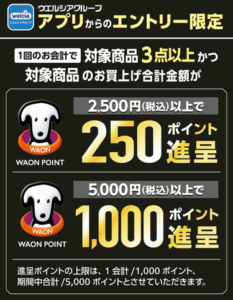 対象商品を3点以上購入してWAON POINTを提示して支払うと、最大でWAON POINTが20%還元されます。