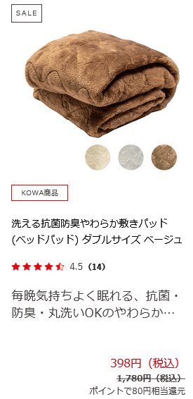 KOWAハピネスダイレクトで敷きパッドダブルが398円!