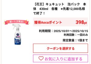 キュキュット泡パックまだ買ってない方は、398ポイントもらえます。こちらも消費税分のみ負担。