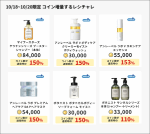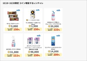 オーマイパスタや、ロリエしあわせ素肌、リステリン、リリーフ、ポイズなどウエルシアデーで買ってみては。