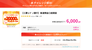【三菱UFJ銀行】普通預金口座開設のみは6000円