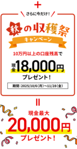 さらに10万円以上の口座残高で現金18,000円プレゼント!