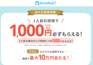 エアウォレットまだの方は 招待コードの入力で500円もらえます