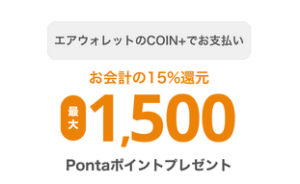 エアウォレットcoin+決済で1万円のお買い物まで→上限1500Pontaもらえる