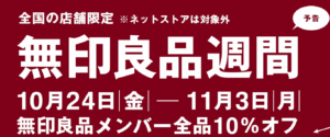 期間中、店舗のお買い物のみ MUJI passport の提示で10%オフ