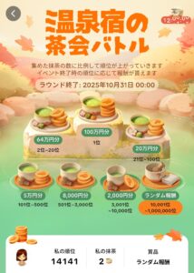 3.お抹茶をあつめる。集めた数に応じてランキングが上がり、賞品を獲得。