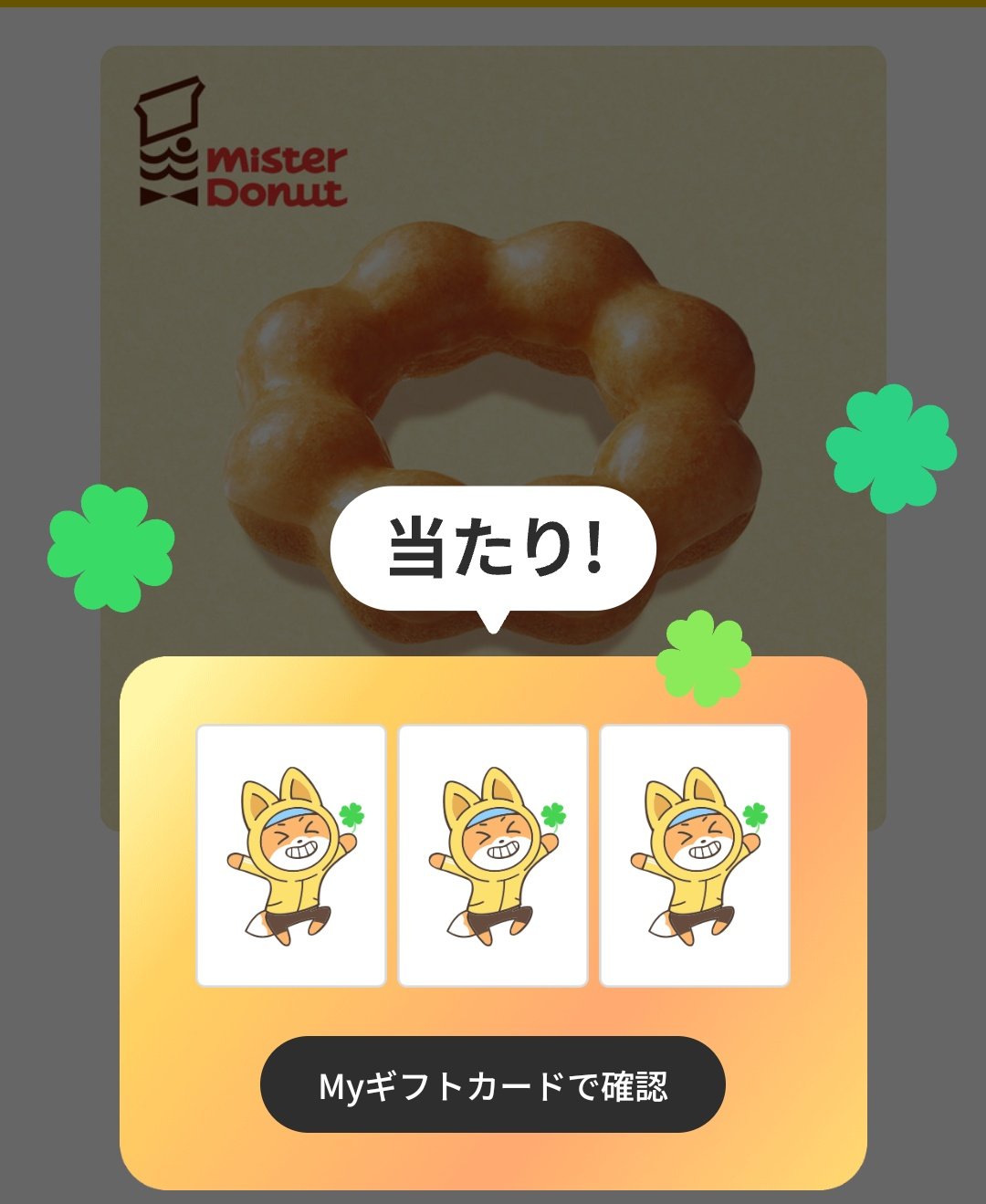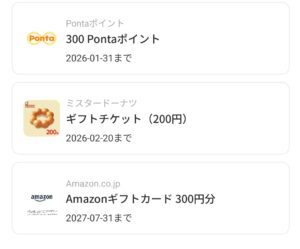 ミスドチケット(200円)と300Pontaポイント当たりました!
