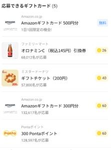ミスド200円分は40コインで応募できます。