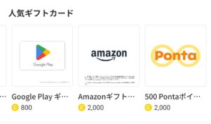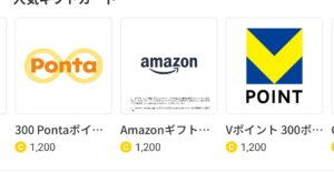 1200コイン集めると各種ギフトコードに交換できます。