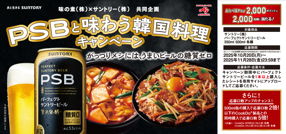 味の素(株)×サントリー(株)共同企画 PSBと味わう韓国料理キャンペーン