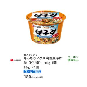 楽天パシャで「もっちりノグリ 韓国風海鮮味(ピリ辛) 」コンビニ購入レシート応募で楽天ポイント180ptもらえます。