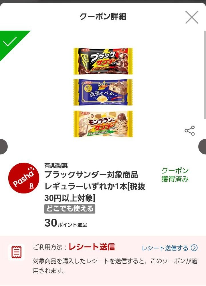 楽天ポイントカードを提示するとレシート応募は不要です。