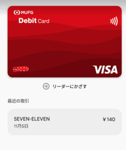 「三菱UFJ銀行デビットカード」のスマホタッチ決済で