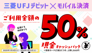 【三菱UFJデビット】モバイル決済ご利用で50%キャッシュバック!