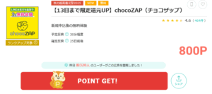 choco ZAP(チョコザップ)無料体験完了で800円に上がっています