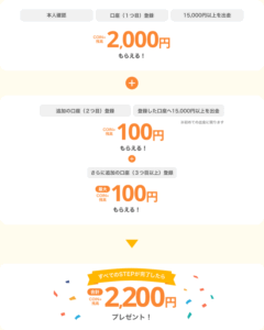 さらにもう2つ口座追加+15,000円以上出金で最大200円