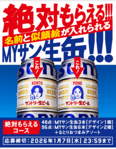 サントリー生ビール「絶対もらえる!!!MYサン生缶」キャンペーン