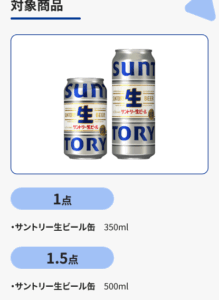 350ml缶は1点、500ml缶は1.5点貯まります。