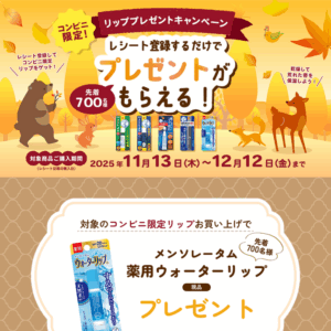コンビニで対象のリップを買って、レシートとバーコード応募で先着で1個もらえます。