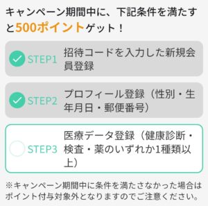 プロフィール登録&お薬データなど簡単な情報送信だけで500ポイントGET