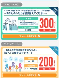 ポイントを貯める方法は、アンケート回答でももらえます。