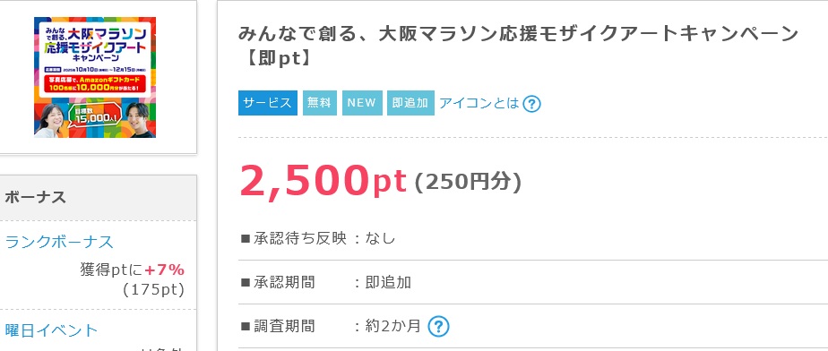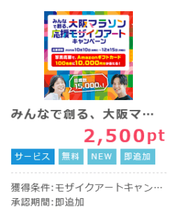 ポイントサイトポイントインカムから「大阪マラソン応援モザイクアートキャンペーン」