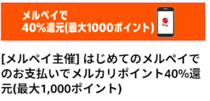 決済金額の40%分のメルカリポイント(合計上限P1,000)が付与されます。