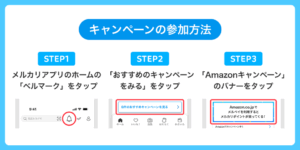 ・キャンペーン期間中にメルペイのネット決済(メルペイ残高・メルカリポイント・メルペイのあと払い)を利用してお買い物をしていること