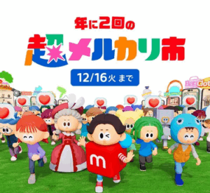 【超メルカリ市~12/16】販売手数料50%還元、大型配送料750円、毎日くじでポイント当たる