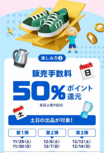 販売手数料の50%分をポイント還元(上限800ポイント/回)