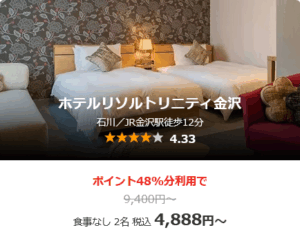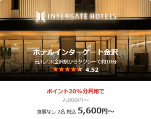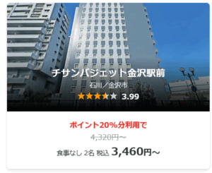 石川県金沢駅前 ポイント20%利用で 2名3460円~