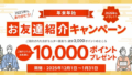 紹介リンクからプライム会員に登録し、30日以内に2,000円以上のお買い物をすると、お互いに1,000ポイントもらえます。