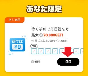 1話を最後まで読むとイベントページに戻りGETするボタンを押します。
