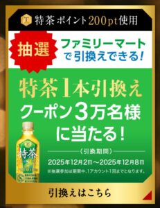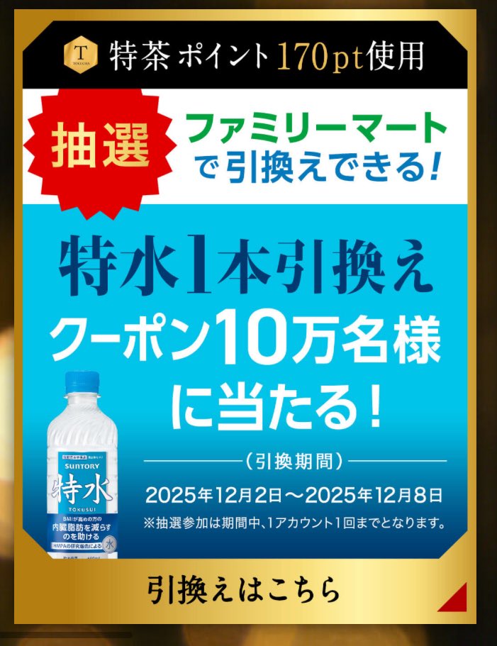 当選すると特水は170pt、特茶は200ptが消化されます。