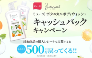 現在、ミューズボタニカルボディウォッシュでキャッシュバックキャンペーンを実施中。