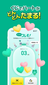 2.花王商品の写真とバーコードをスキャンしてスクラッチくじに挑戦でき、当たりが出るとハートがたまる。