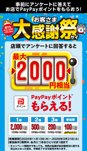 ソフトバンク来店アンケートで PayPayポイントが必ずもらえます。