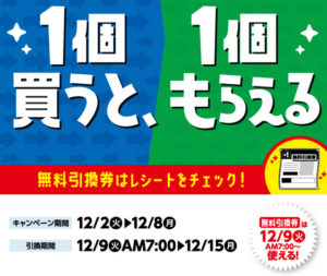 12/9~15に引換え可能な野菜生活無料クーポンがもらえます。
